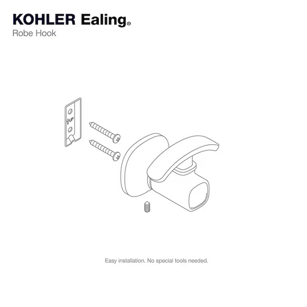 Construcción de metal premium para durabilidad y fiabilidad, los acabados KOHLER resisten la corrosión y el empañamiento, fácil instalación - no se requieren herramientas especiales, herraje de instalación y plantilla incluido.